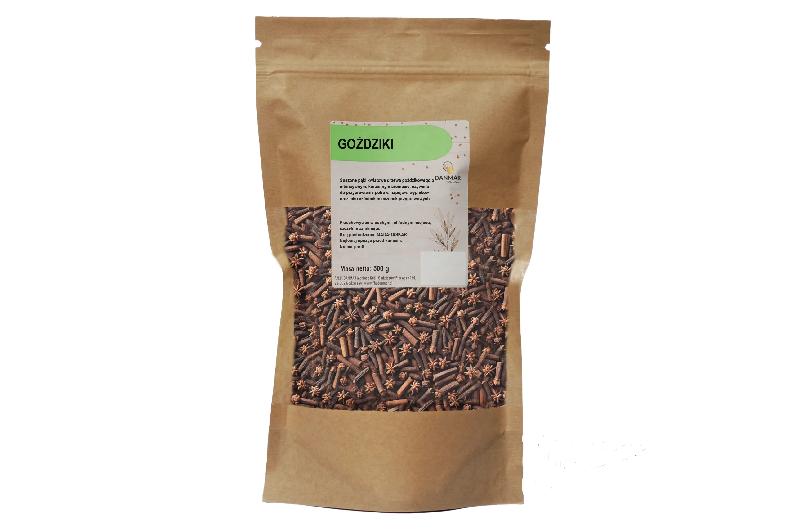 Dzięki opakowaniu typu doypack nasze goździki zachowują świeżość i aromat na długo. Po użyciu wystarczy zamknąć strunowe zamknięcie i przechowywać przyprawę w suchym miejscu, z dala od bezpośredniego światła słonecznego. Możesz bez obaw przechowywać je w oryginalnym opakowaniu, nie martwiąc się o utratę walorów smakowych.