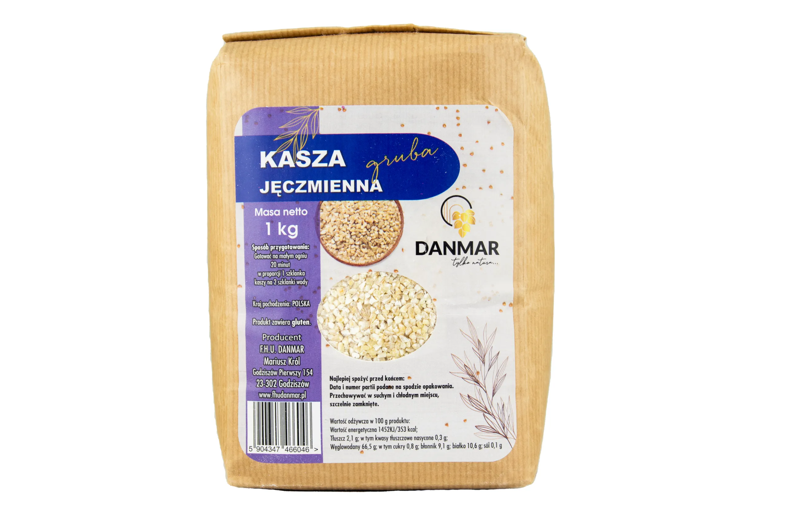 Kasza jęczmienna to tradycyjny i autentyczny polski produkt, który powstaje dzięki starannie dobranym ziarnom jęczmienia. Charakteryzuje się ona charakterystycznym kształtem – jest to kasza w formie małych, kulistych, lekko spłaszczonych ziarenek o złocistym kolorze. Jest to jeden z najstarszych rodzajów kasz, której tradycja produkcji sięga wielu pokoleń.