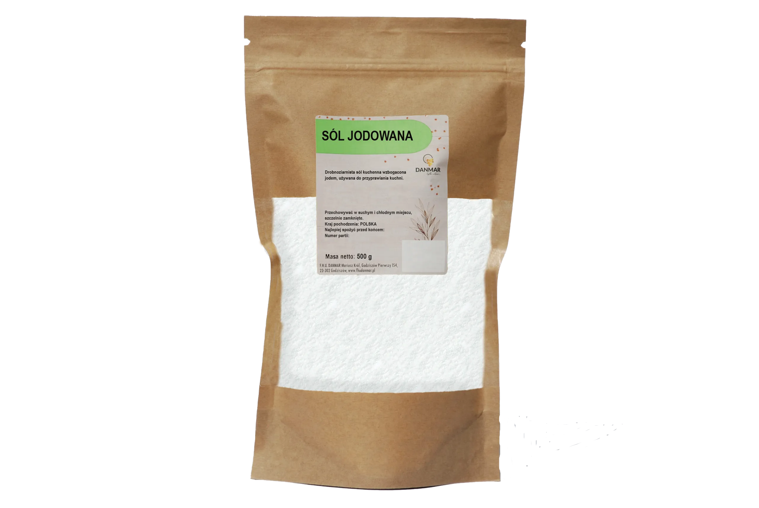 Sól jodowana to klasyczna przyprawa, która odgrywa kluczową rolę zarówno w smaku potraw, jak i w zdrowiu. Jest wzbogacona jodem, minerałem niezbędnym dla prawidłowego funkcjonowania tarczycy. Nasza sól jodowana to produkt najwyższej jakości, który pozwoli Ci cieszyć się pełnią smaku potraw, dbając jednocześnie o swoje zdrowie.
