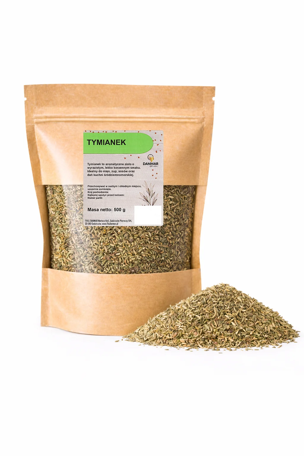 Tymianek suszony o intensywnym aromacie. Idealny do mięs, zup, marynat i warzyw. Naturalna przyprawa w wygodnej formie.